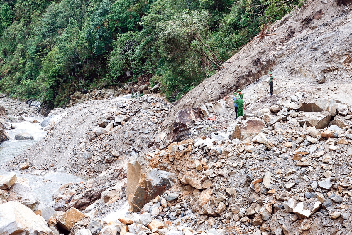 Đại tá Nguyễn Viết Giang, Giám đốc Công an tỉnh Lai Châu trực tiếp chỉ đạo công tác tìm kiếm, cứu hộ, cứu nạn trong vụ sạt lở đất tại công trình thủy điện Tả Páo Hồ 1A (huyện Phong Thổ) khiến 5 người chết, 4 người bị thương.