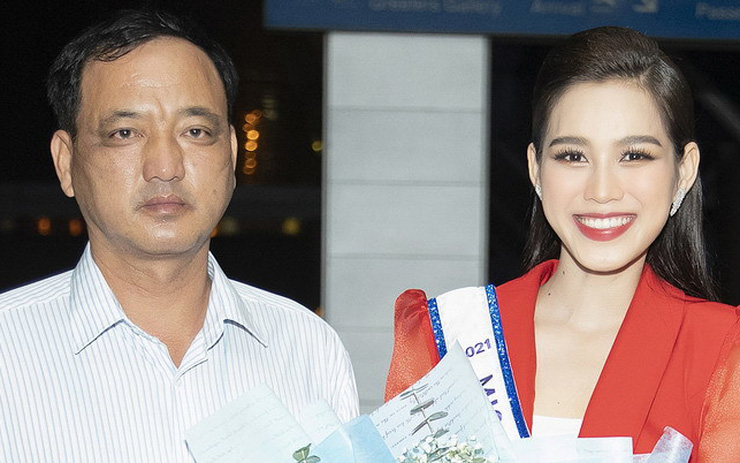 Vợ chồng ông Đỗ Văn Tào tiễn con gái Đỗ Thị Hà đi thi Miss World 2021.