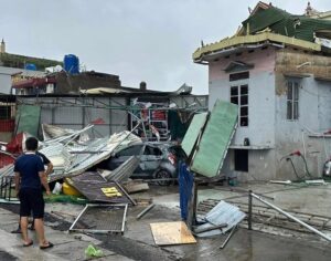 Nhiều ngôi nhà ở xã Thái Thụy – Hưng Yên (Thái Bình cũ) bị tốc mái, hư hỏng.