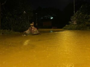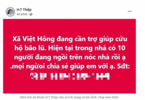 “Xã Việt Hồng đang cần trợ giúp cứu hộ bão lũ. Hiện tại trong nhà có 10 người đang ngồi trên nóc nhà rồi ạ…”, tài khoản H.T Thiệp đăng tải lên mạng xã hội kèm theo số điện thoại.